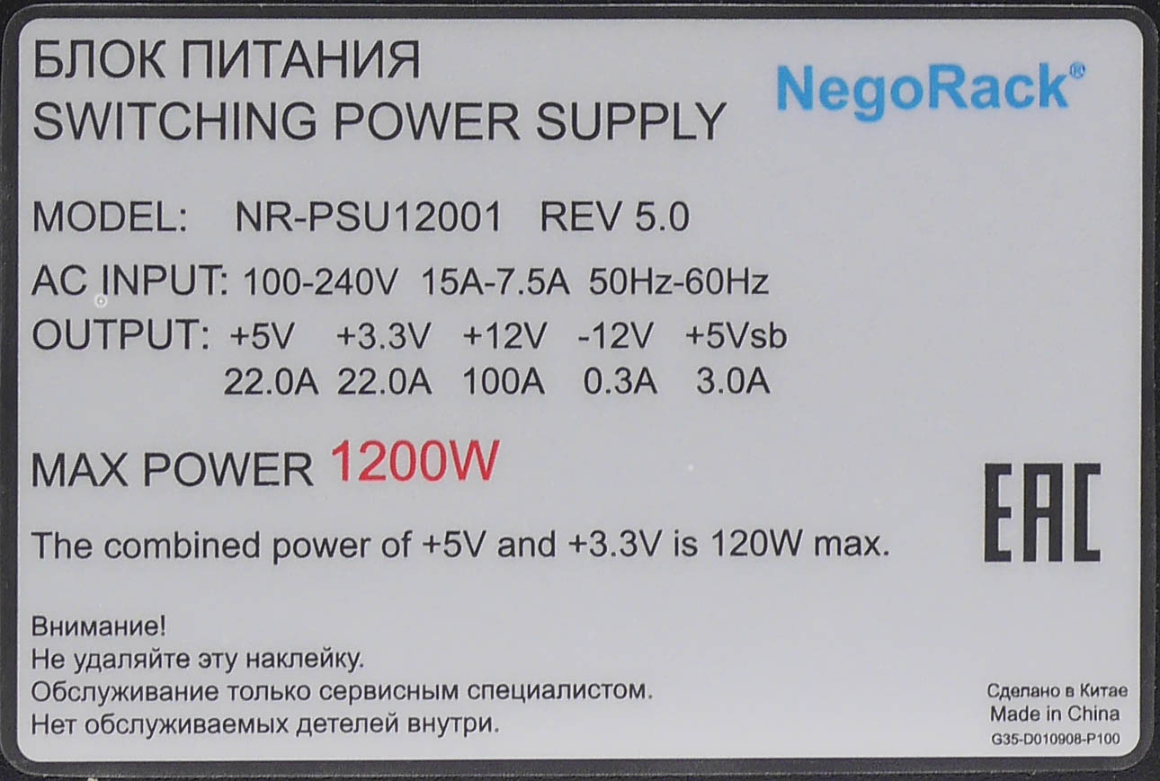 [NR-PSU12001 rev.5] Блок питания Negorack ATX 1200W (24pin+2x8(4+4)pin+4x8(6+2)pin, 8xSATA, 6x 4pin Molex, APFC |